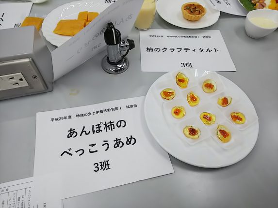 12月8日、山梨学院大学健康栄養学部実習室で、フルーツ大使の皆さんにより開発された、 鶏卵と甲州百目のあんぽ柿&さらし柿を使った新メニューの試食会が行われました。 協議会理事の風間と、笛吹市役所の方から、一言ご挨拶。 […]